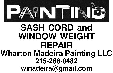 SASH CORD and WINDOW WEIGHT REPAIR Wharton Madeira Painting LLC 215-266-0482 wmadeira@gmail.com